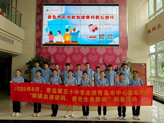 为弘扬奉献精神,点燃青春热血,2025年8月,青岛市第五十中学2024级3班的同学们开展了一次别开生面的社会实践活动——走进青岛市中心血站,沉浸式体验血液的爱心之旅,感受生命接力的温度与力量。